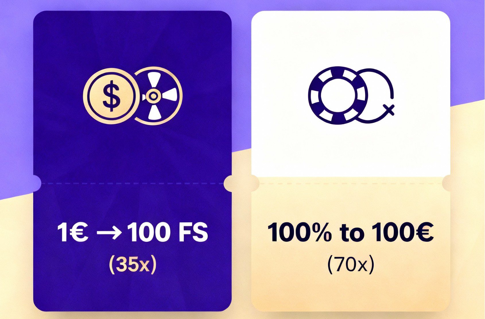 | Tarjous | 100 ilmaiskierrosta | 100% talletusbonus |