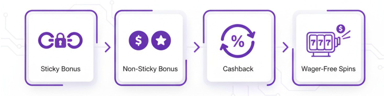 Non-sticky bonus on yksi markkinoiden reiluimmista eduista. Siinä oma talletuksesi ja bonusraha pidetään erillään. Pelaat aina ensin omalla rahallasi. Jos voitat isosti omalla rahalla pelatessasi, voit peruuttaa bonusosan ja kotiuttaa voittosi välittömästi ilman kierrätysvaatimuksia. Bonusraha aktivoituu vasta, jos häviät oman talletuksesi, toimien ikään kuin toisena mahdollisuutena.
